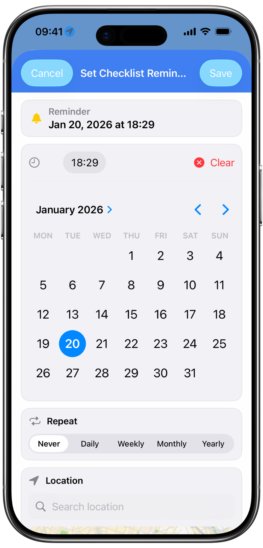 yCheck supports multiple reminder types to keep you on track:• Time-based reminders: Set a date and time for a checklist.