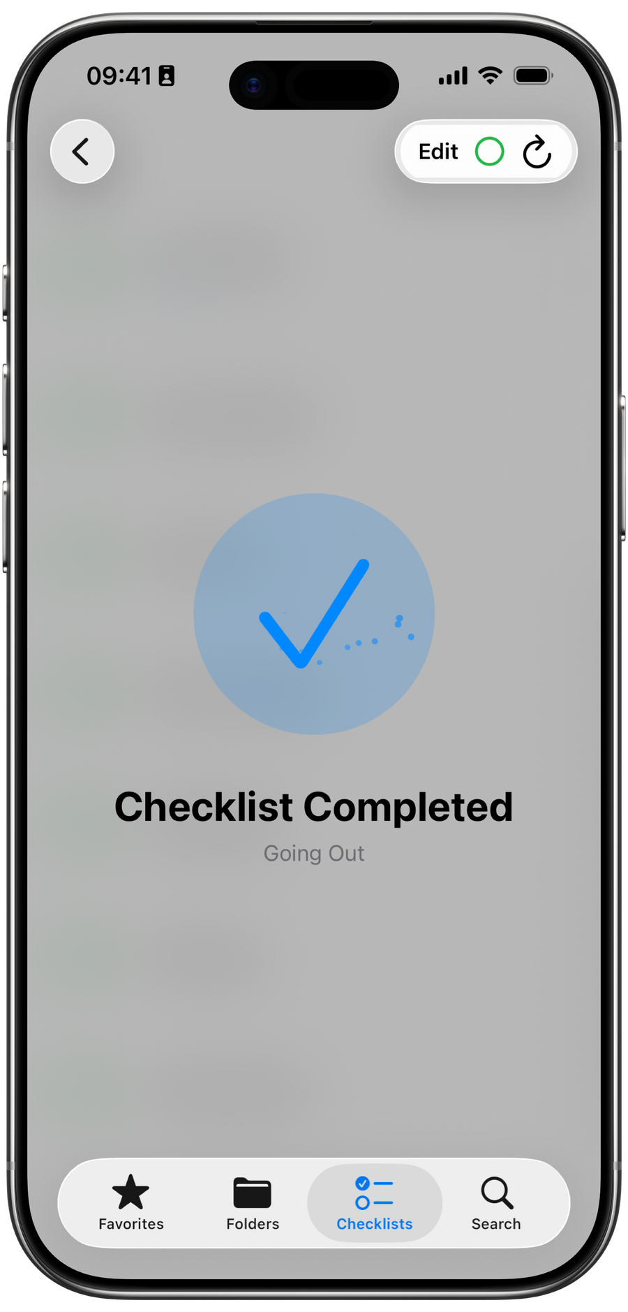 • Check off items as you go. When you finish a checklist, you’ll see a satisfying completion screen.