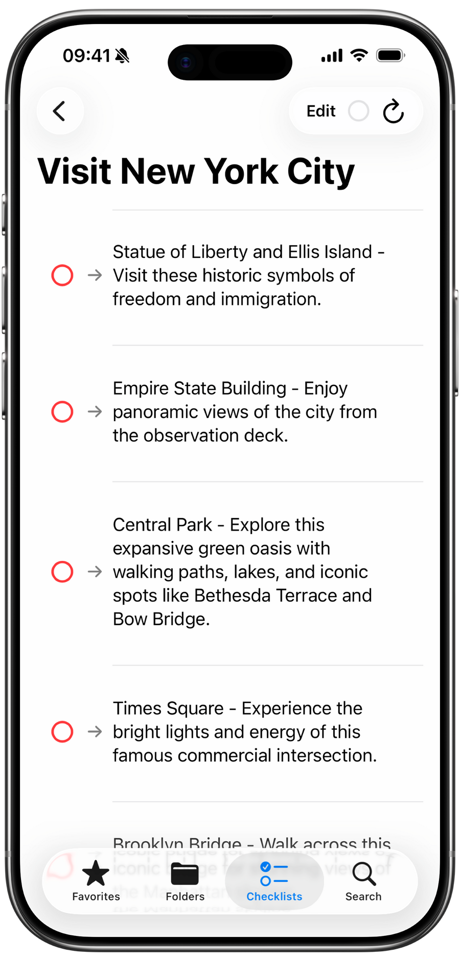 • Unlimited checklists, folders, favorites, and sub-items.