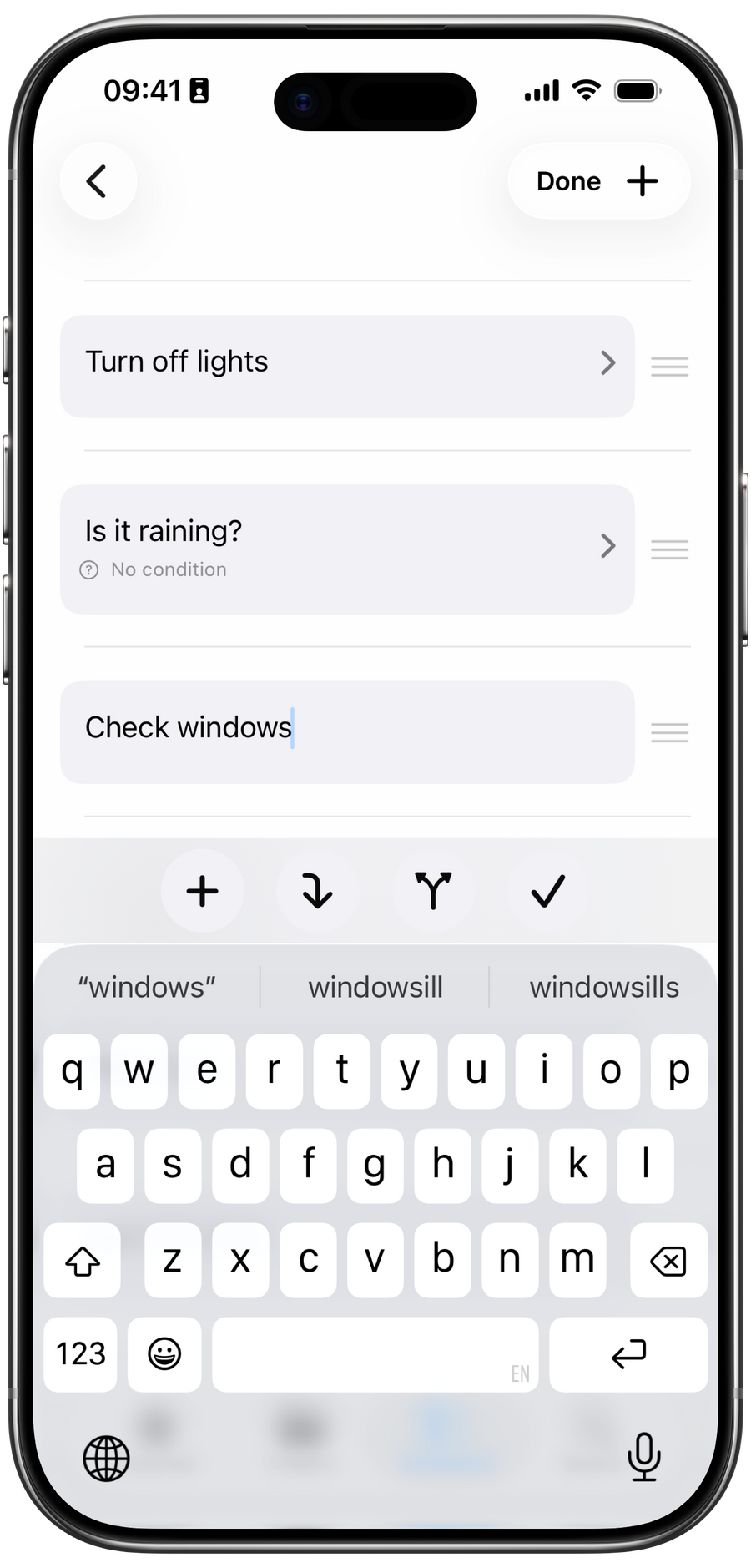 • Conditional items only activate when their conditions are met, helping you keep lists relevant and uncluttered.