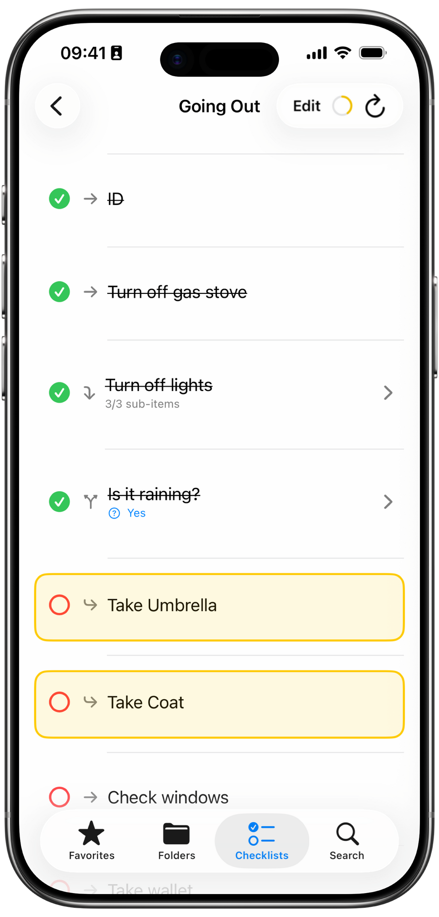 • Unlimited checklists, folders, favorites, and sub-items.